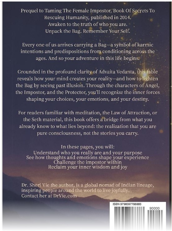 In our 2014 book, Taming The Female Impostor, Book of Secrets to Rescuing Humanity. A female's guide to a better life, we introduced the concept of the Bag of Codes — the energetic blueprint we carry from life to life, similar to the Gita’s “bag of karma.”